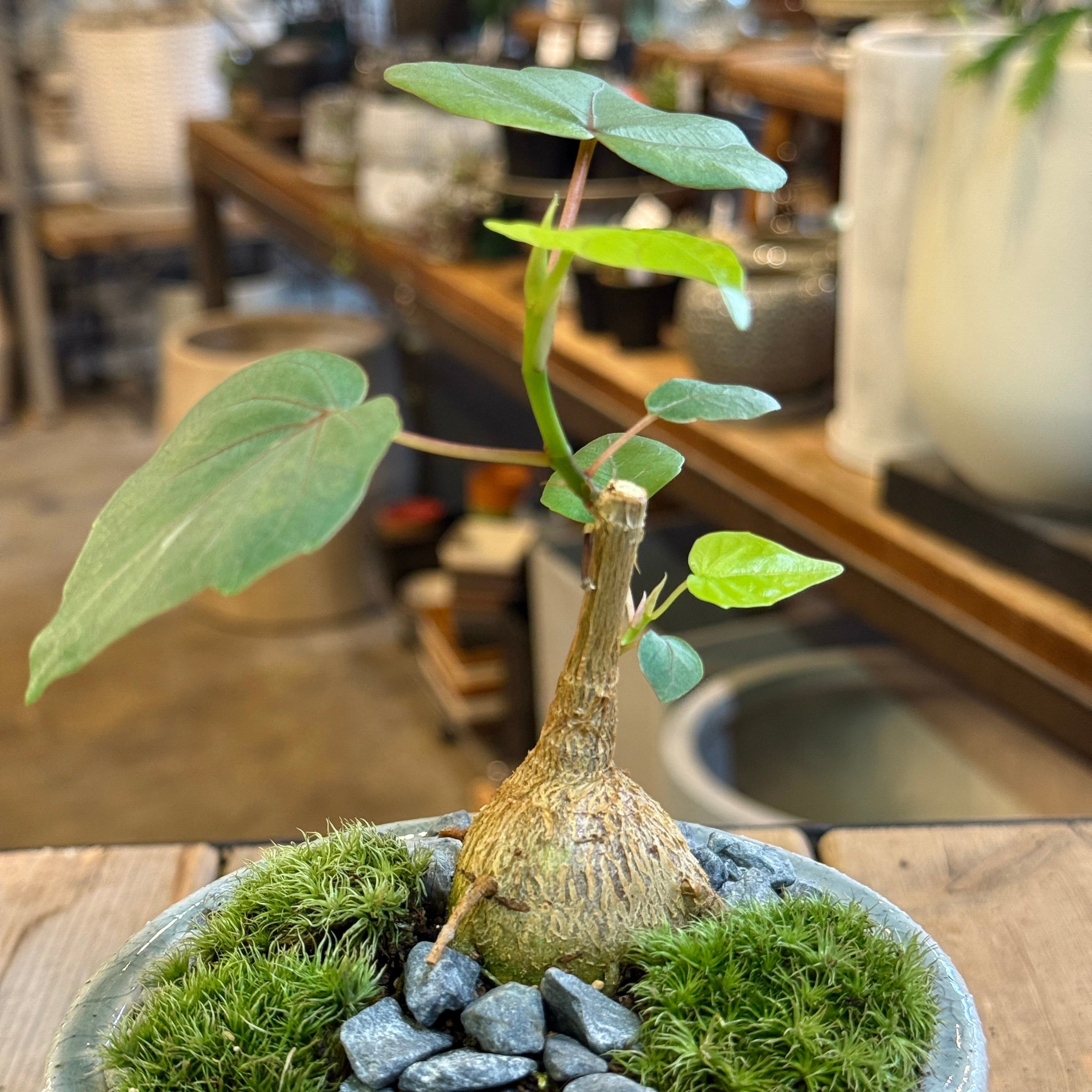 ぷっくりと膨らんだ株元が特徴的な、塊根植物のような魅力を持つフィカス。