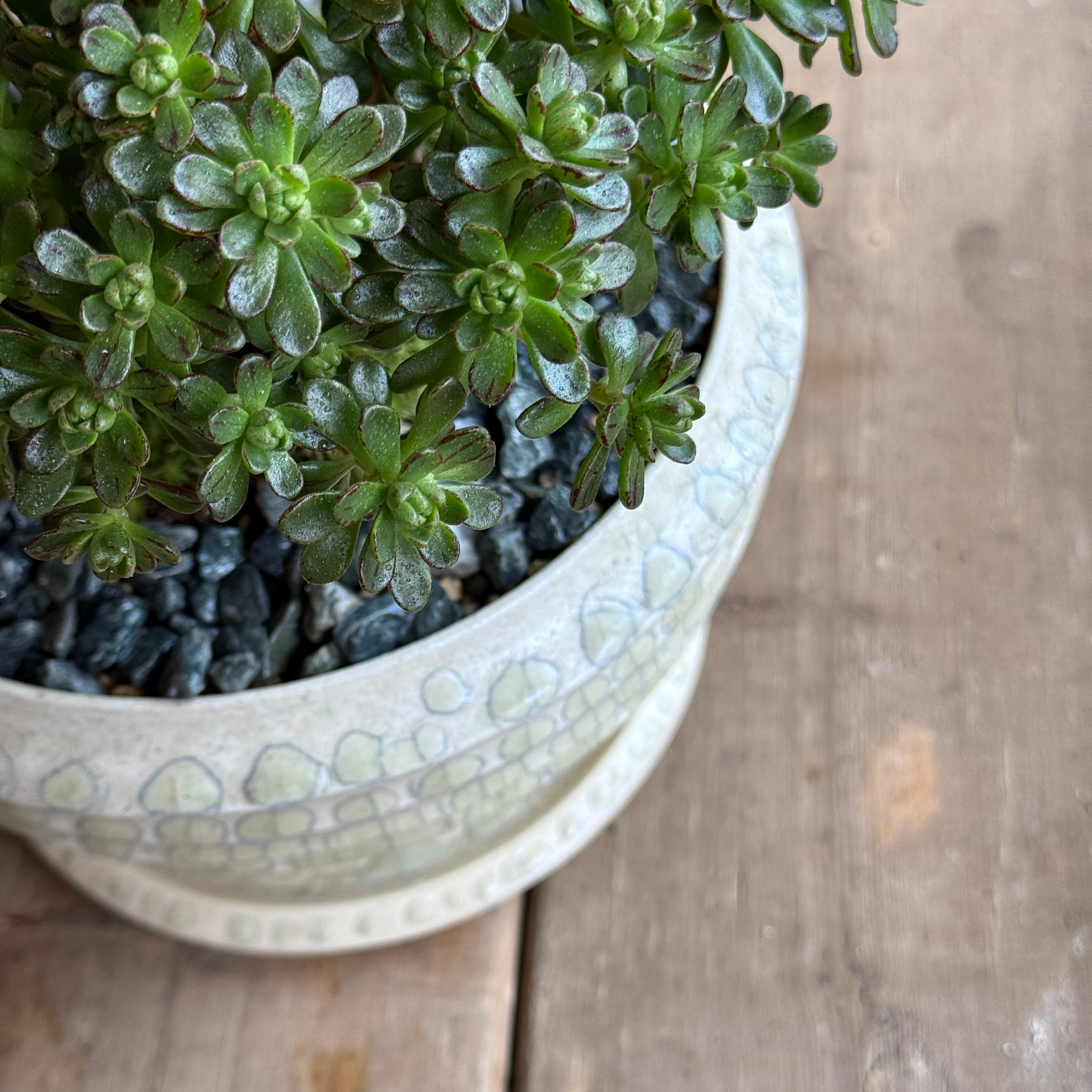 この鉢は「乾燥を好む多肉植物」と「湿度を好む苔」を一緒に仕立てています。